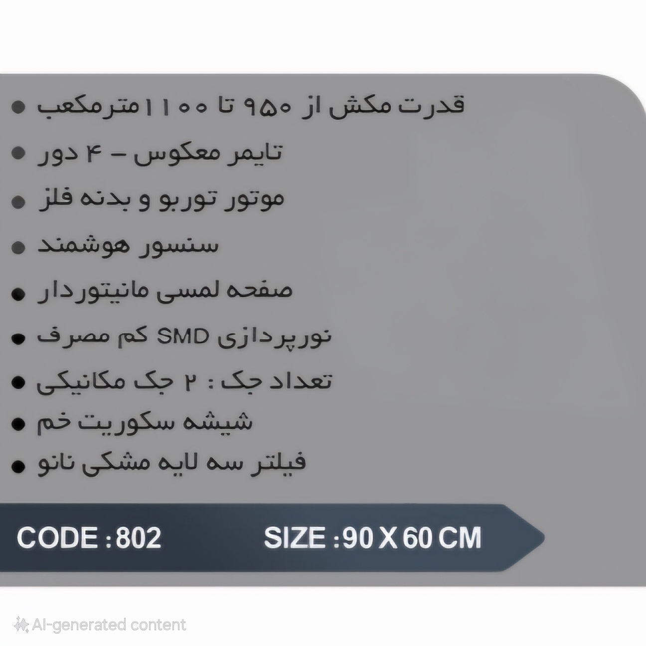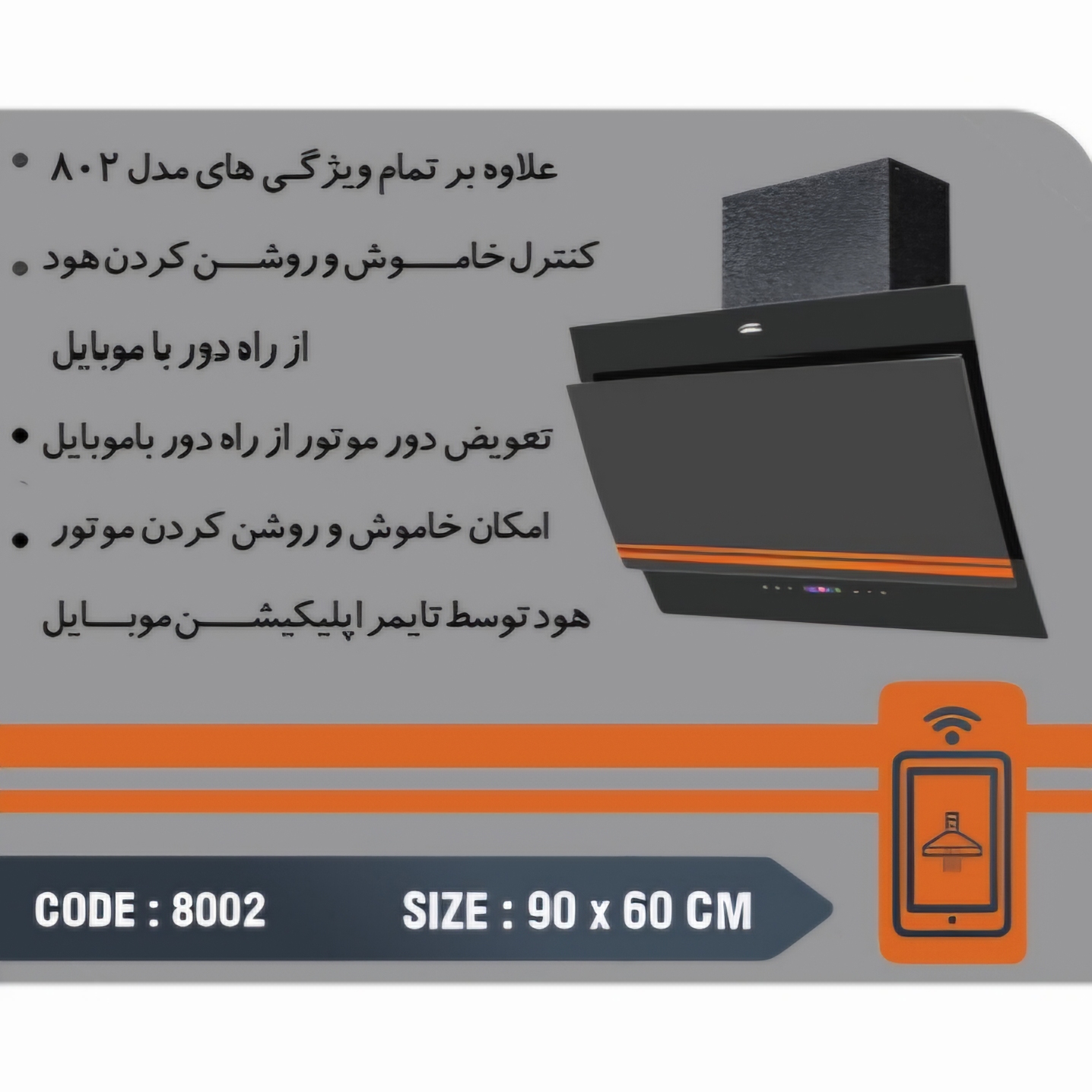 هود آشپزخانه مورب هنزا مدل ۸۰۰۲ با طراحی مدرن و قابلیت کنترل از طریق موبایل، تجربهای نوین از آشپزی را برای شما به ارمغان میآورد. با عملکرد بیصدای قدرتمند و نورپردازی LED، آشپزخانهای پاک و شیک را تجربه کنید. این هود با بهرهوری بالا و زیبایی بینظیر، انتخابی ایدهآل برای هر خانهای است.